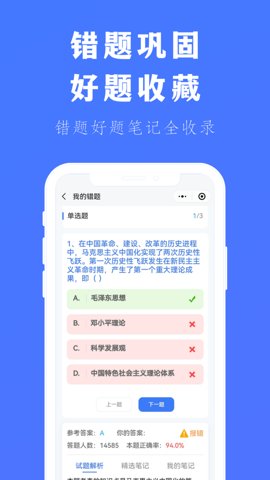 1、用户可以通过刷题宝查看我的错题、我的收藏、我的笔记等功能,按照考点和考卷进行分类,方便用户强化巩固知识,查漏补缺。