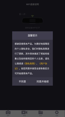 请在手机的设置中找到WIFI选项,搜索并连接到行车记录仪的WIFI网络,连接成功后打开app即可使用。