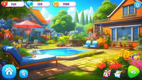 4、游戏中还有具有挑战性和回报的设计游戏,让玩家掌握家居装饰艺术,打造自己的梦想花园度假胜地。