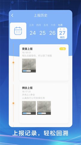 4、夜间上报功能,保安员在夜间工作时可以通过APP上报情况,确保安全隐患能够及时被发现。