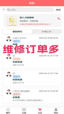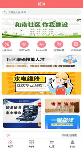 1、智慧才能社区维修服务依托才能网人材机服务,为用户提供全方位的家居家电维修服务。