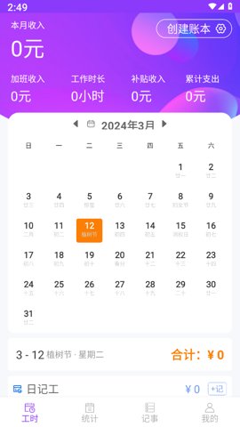 1、支持多种记账方式,根据自己的需求选择记录工资、工时或加班,灵活应对不同场景。