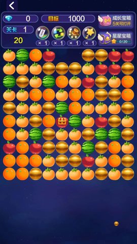 4、而在水果消消的玩法中,玩家需要将相同种类的水果进行消除,消除的水果越多,得分也就越高,还能获得道具奖励,帮助玩家顺利通关。
