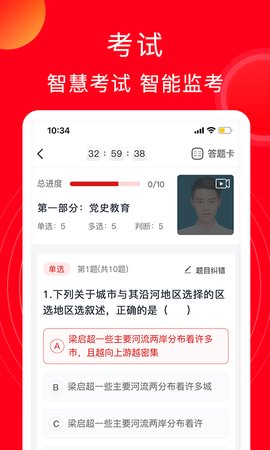 4、进入考试模块后开启前置摄像头,系统会在答题过程中持续进行人脸比对。
