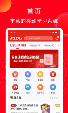 公交云课堂是一款面向公交驾驶员的移动学习应用,整合了视频课程、在线测评与活动参与等多种元素。软件采用面部识别技术进行身份验证,无需注册复杂账号即可直接登录。学员能够利用工作间隙或休息时间观看教学视频,参与直播讲座,并完成系统安排的考核任务。平台还会根据学习进度推送相关活动信息,方便学员及时报名参加。