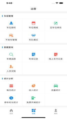 2、数据统计功能,提供详细的运营数据报告,帮助用户分析停车场的使用情况和收入情况。