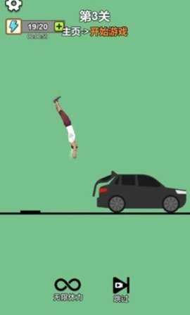 空翻高手解压高手后空翻大师是一款搞笑魔性的简单易玩游戏,只需点击荧幕就能跳上物体,在特殊目标上著陆、完成酷炫杂技空翻、前空翻或后空翻等动作来获取高分并通关!像搞笑的体操或跑酷运动员那样完成极限技巧,玩家将体验到无与伦比的乐趣与挑战。游戏的操作简便,适合所有年龄段的玩家,带来轻松愉快的游戏体验,绝对是消磨时间的绝佳选择。