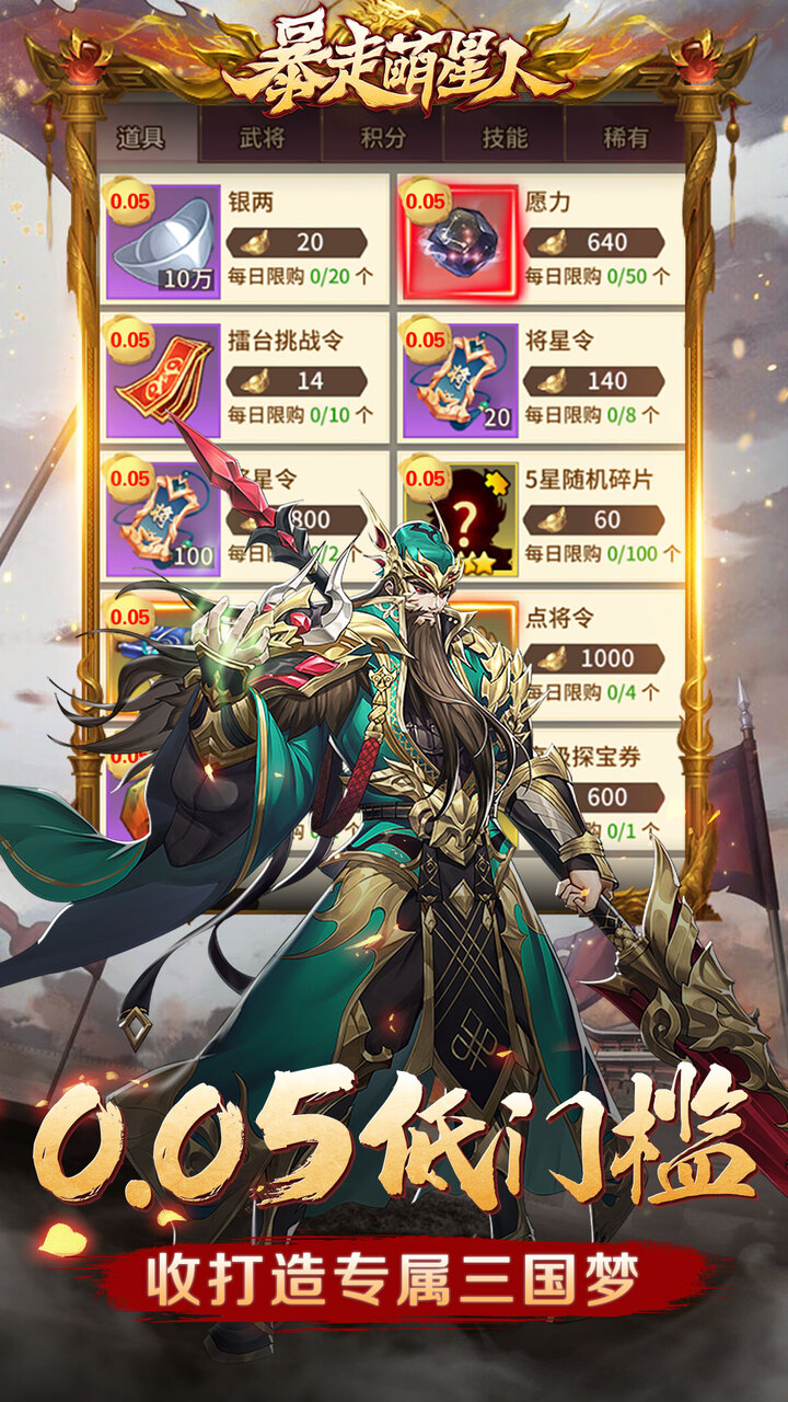 1、道具、武将和资源包均享受超低折扣,平民玩家也能轻松收集强力武将,打造顶级阵容,体验到与众不同的游戏乐趣。