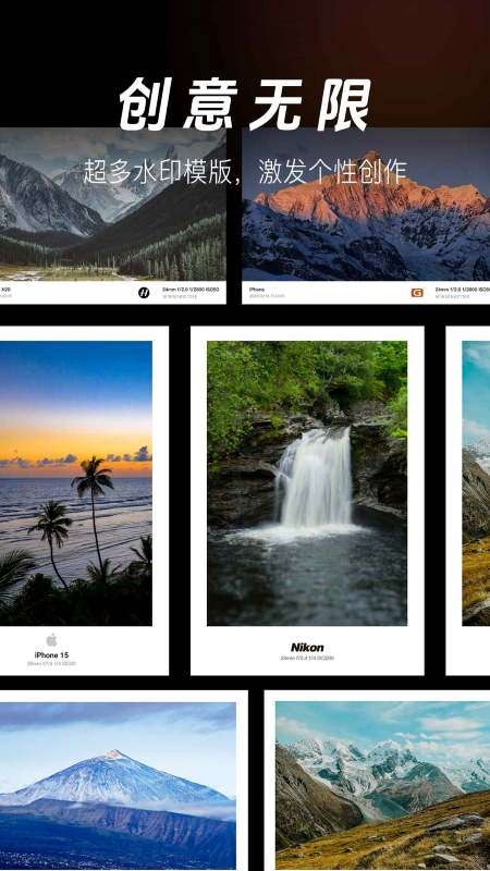 2、水印与边框的样式设计考究,与不同品牌摄影器材的调性高度契合。