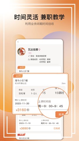 教练可以根据自己的时间安排自由选择接单,无需坐班,充分利用业余时间进行教学,增加额外收入。