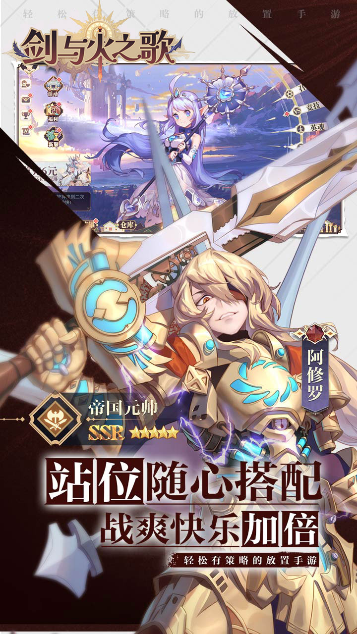 剑与火之歌是一款充满奇幻色彩的二次元冒险放置手游,玩家将在这里体验到独特的冒险旅程。游戏的核心玩法围绕着角色的培养与战斗展开,玩家可以通过收集和培养不同的角色,组建自己的冒险队伍。战斗采用放置机制,玩家即使不在线也能获得经验和资源,轻松解锁新内容。丰富的剧情设定和多样化的任务系统,将带领玩家探索一个充满神秘与挑战的幻想世界。
