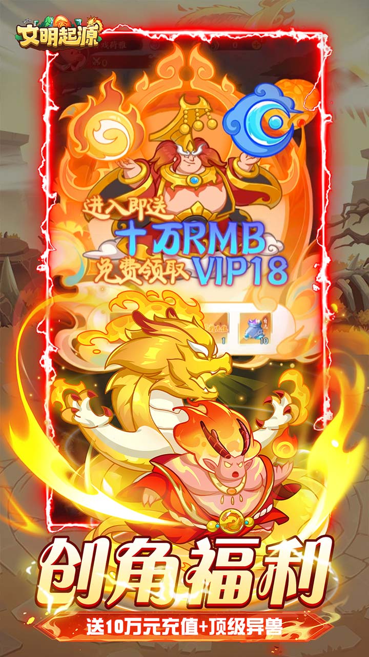 ★【创角福利】:登录即送10万充值卡+自选神话异兽!