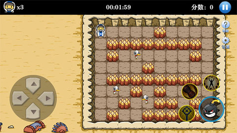 1、虚拟摇杆与按键的响应迅速,角色移动与放置炸弹的动作衔接顺畅,没有迟滞感。