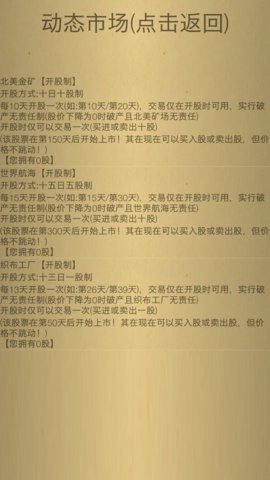 2、玩家可以扩大工厂规模,雇佣更多工人,打造自己的品牌,发布武器,买卖股票,招兵买马,攻略世界,最终留下遗产,结束国王生涯。