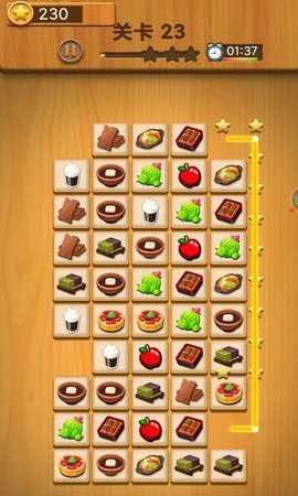 1.连连看玩法:水果连连看单机游戏玩法简单,玩家通过连线消除相同水果,每一对水果的连线路径不超过两次转弯,考验玩家的观察力和反应能力。