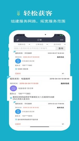 4、一键抢单功能,根据自己的技能快速获取服务线索,直接与客户沟通,提升交易成功率。