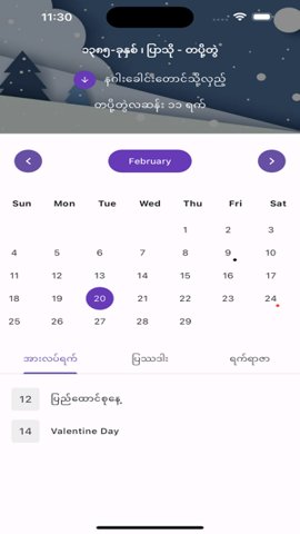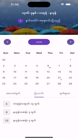 这款应用不仅提供了实用的日历功能,还融入了缅甸的文化元素,让用户在使用过程中感受到浓厚的地方文化气息。