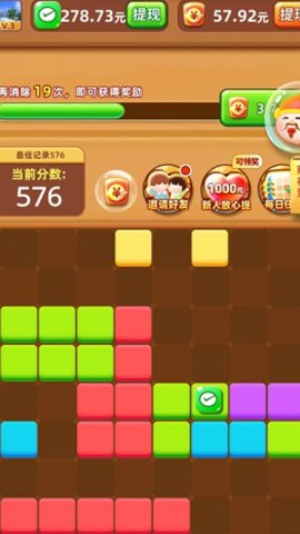 在好运拼拼拼中,玩家的主要任务是通过拼接方块来消除它们。游戏开始时,玩家会看到一个由不同颜色方块组成的拼图。通过点击和拖拽,玩家需要将相同颜色的方块拼接在一起,形成完整的形状。完成拼接后,方块会被消除,玩家将获得相应的积分和红包奖励,随着关卡的推进,玩家会面临更高难度的挑战,考验他们的策略和反应能力。