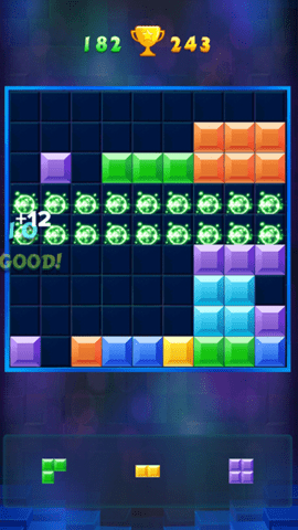 3、玩家需要将五颜六色的宝石块拖放到9×9的网格中,以创建完整的线条来消除块。