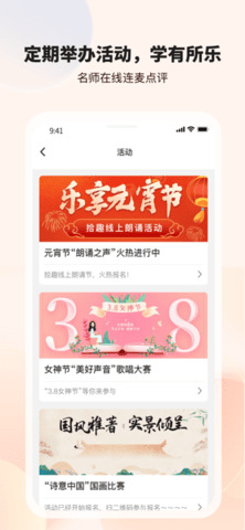 平台汇聚了70多位名师的课程,涵盖了歌唱、朗诵、乐器、摄影等多种兴趣领域,根据自己的兴趣选择学习内容,课程数量超过100套,满足不同用户的需求。