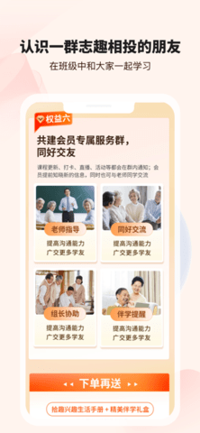 1、专为老年人设计的学习平台,提供丰富的课程和社交活动,帮助用户在退休后找到新的生活乐趣。