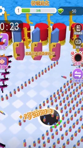 吞掉萝卜刀是一款令人兴奋的黑洞吞噬闯关类游戏。在这个游戏中,玩家将化身为一个强大的黑洞,利用其引力吸食周围的一切物体,逐步壮大自己的体积。游戏设计了丰富多样的关卡挑战,每一个关卡都经过精心设计,考验玩家的操作技巧和智力。随着关卡的推进,难度逐渐增加,玩家需要快速反应,灵活应对各种复杂的情况。每一次吞噬都伴随着强烈的视觉冲击,让人仿佛置身于一个梦幻的宇宙空间,沉浸在这场吞噬的冒险之中。