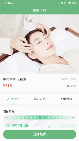 5、根据自己的需求选择不同类型的按摩和推拿服务,涵盖放松、舒缓、保健等多种项目,满足不同用户的需求。