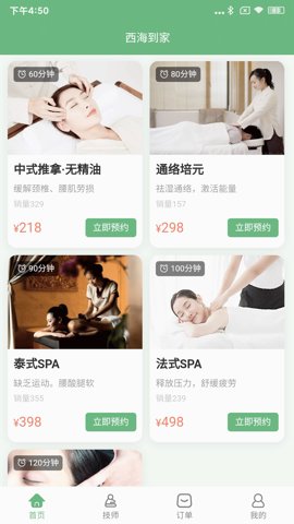 1、支持在线预约,随时随地通过手机轻松选择技师,设定上门时间。