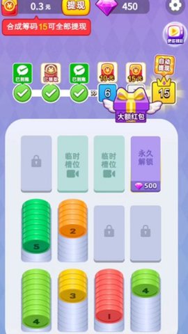 合成硬币的过程中,玩家需要注意合成的顺序和策略,合理安排合成的方式才能更快地达到目标。例如,合成到5和10后,玩家可以提取相应的红包奖励,而后续合成到15则需要更多的耐心和时间。这个过程不仅考验玩家的反应能力,还需要一定的思考和计划。