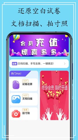 1、拍照上传试卷,APP自动识别并生成清晰的扫描件,省去手动输入的麻烦。