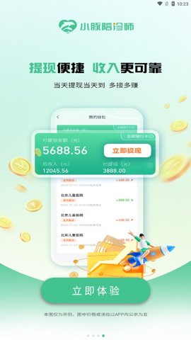 小豚陪诊师app是一款专为陪诊师和需要陪诊服务的用户而设计的专业平台。提供了丰富的陪诊订单,还支持全国多个城市的服务,让陪诊师能够轻松接单。无论是全天陪诊、半天陪诊,还是诊前约号、预约挂号等多种服务,小豚都能满足用户的需求。陪诊师可以更高效地为用户提供服务,同时也能享受到便捷的接单体验,真正实现了供需双方的无缝对接。