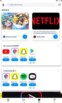可通过顶部搜索栏输入应用名称(如“抖音”“快手”“爱奇艺”)查找修改版或去广告版本。
