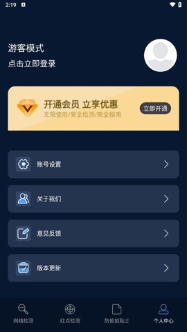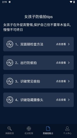 1、支持一键快速检测,用户只需轻触屏幕,即可启动摄像头探测,快速获取周围环境的安全信息。