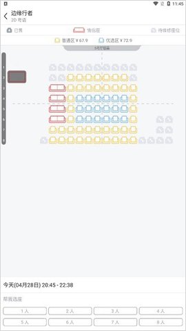 2、购票时可直接在座位图上选择心仪的位置,图形化界面让选座过程一目了然。