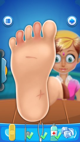 3、除了足部护理,游戏还设置了一些挑战关卡,限制、特殊要求等,增加了游戏的难度和趣味性。