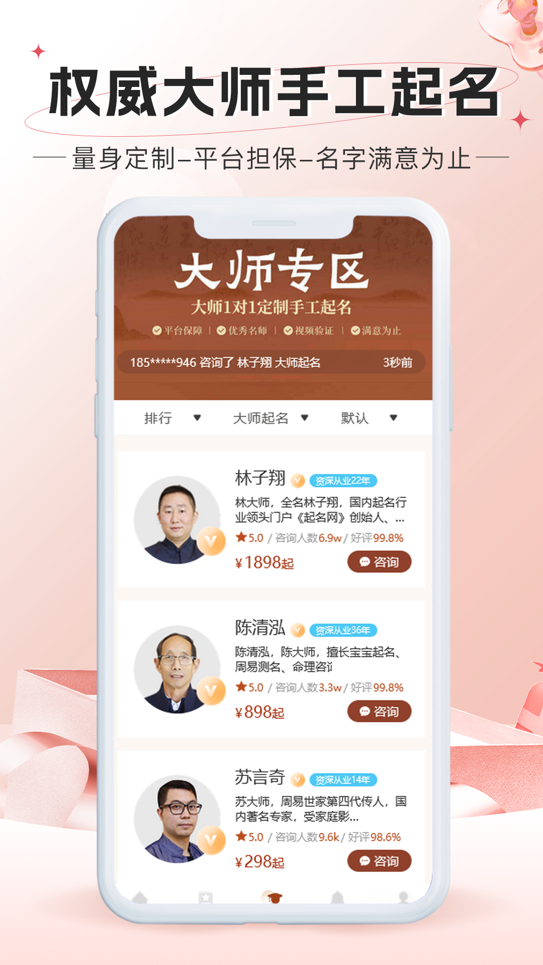 2. 提供专家定制服务,预约专业的起名师进行一对一的咨询,确保名字的独特性和个性化。