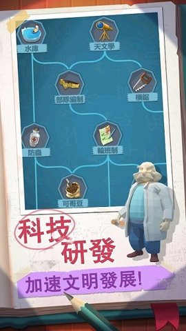 玩家在游戏中可以研发多种科技,推动文明的进步,科技的进步不仅提升了玩家的收集效率,也让游戏的玩法更加多样化。