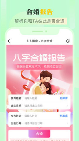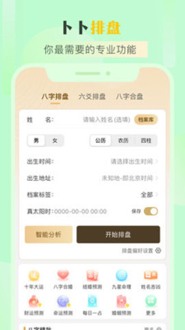 卜卜排盘软件是由北京玄易无限网络科技有限公司推出的一款占卜算命的工具应用,更好的进行命理的推理,为你精准有效地推算你未来的各种运势走向。通过你的生辰八字、首相等方式进行推算,为你提供有效的信息内容。