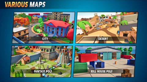 1、在射手打击(PolyGunsFps ShooterStrike)的枪战模式中,玩家们将竞争成为第一个获得一系列武器拾取器的人。