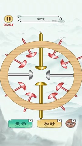 拔了个钉子是深圳市华讯百里科技有限公司开发的一款益智游戏,玩家需要在有限的时间内将场景中的所有钉子都成功拔出。这款游戏考验玩家的计谋和思维能力,因为每个场景的钉子排列方式都各不相同,需要玩家灵活运用策略来解决。