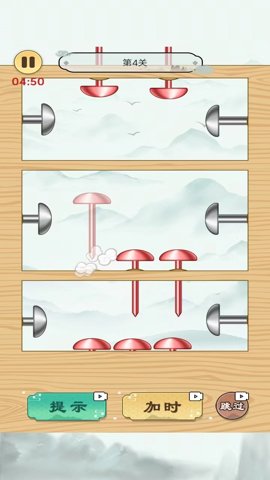 3、有时候需要先拔掉某些特定的钉子,才能顺利拔出其他的钉子,这就需要玩家有耐心和细心地思考每一步的操作。