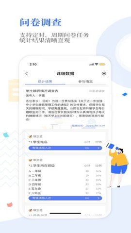3、校园应用还支持校内通知的定时、周期性问卷任务,统计结果清晰直观。