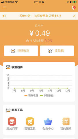 联兑通商家版是一款专为商家设计的综合收银与营销管理软件,帮助商家实现线上线下一体化的收款、会员管理、数据分析、营销推广等业务操作。