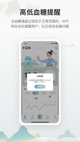 5、通过直观的数据展示方式,帮助用户清晰了解自己的血糖状态,并在血糖值异常时实时提醒用户,协助用户调整生活方式和饮食习惯。