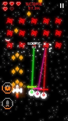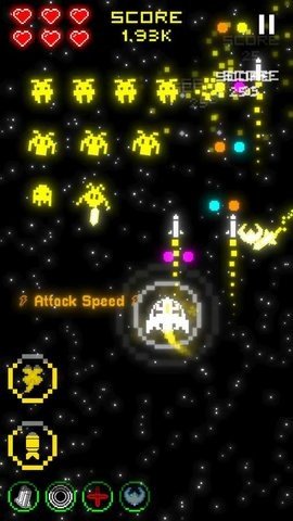 2、玩家可以选择色彩丰富的飞船,在竖版场景中与外星人对战。