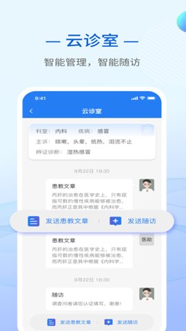 通过云诊室,医生可以高效管理患者信息,随时随地对患者进行远程随访,确保患者的健康状况得到及时关注与调整。