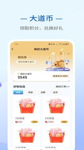 5、积分兑换:用户在使用过程中可以获得大道币,积累积分后可兑换丰富的健康礼品,增强使用体验。