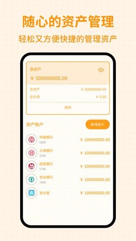 1、支持一键快速记账,用户只需简单输入金额和分类,即可完成记账,节省时间。