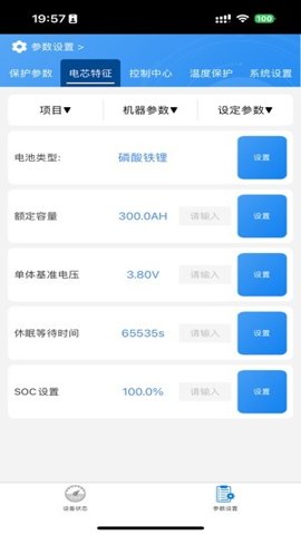 进入应用后,选择设置选项,输入正确的密码后即可进行电池保护参数的设置和修改。