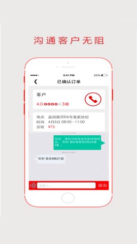 可以通过应用内的即时消息功能与客户进行沟通,确认具体的服务需求和时间安排,确保双方信息一致。
